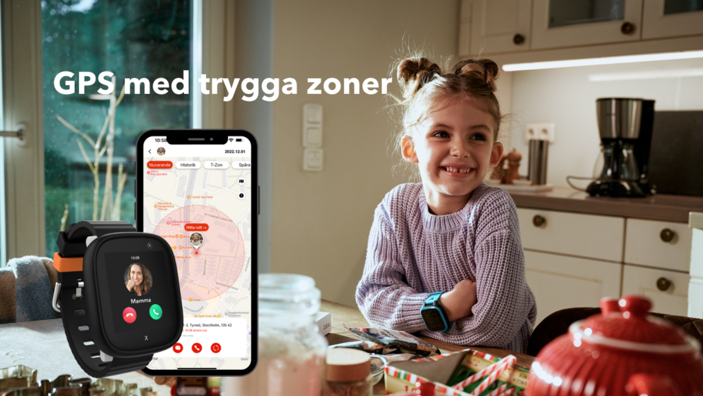 I föräldraappen kan du se var ditt barn befinner sig genom Xplora-klockans GPS. I appen kan du som förälder även skapa trygga zoner, till exempel “Hem”, “Skola”, “Fotbollsplanen” etc. Varje gång ditt barn antingen lämnar eller går in i en trygghetszon (eller T-Zon) får du ett meddelande på din telefon. Om ditt barn till exempel måste gå till skolan ensamt kan du följa när han eller hon lämnar den trygga zonen hemma och kommer till den trygga zonen i skolan.