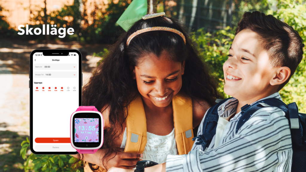 I föräldraappen kan du ställa in skollägen på ditt barns Xplora smartklocka, som är tidsinställda perioder som du anger. När ditt barns smartklocka är i skolläge fungerar klockan uteslutande som ett vanligt armbandsur, utan andra funktioner tillgängliga för barnet – dock är SOS-knappen fortfarande tillgänglig.