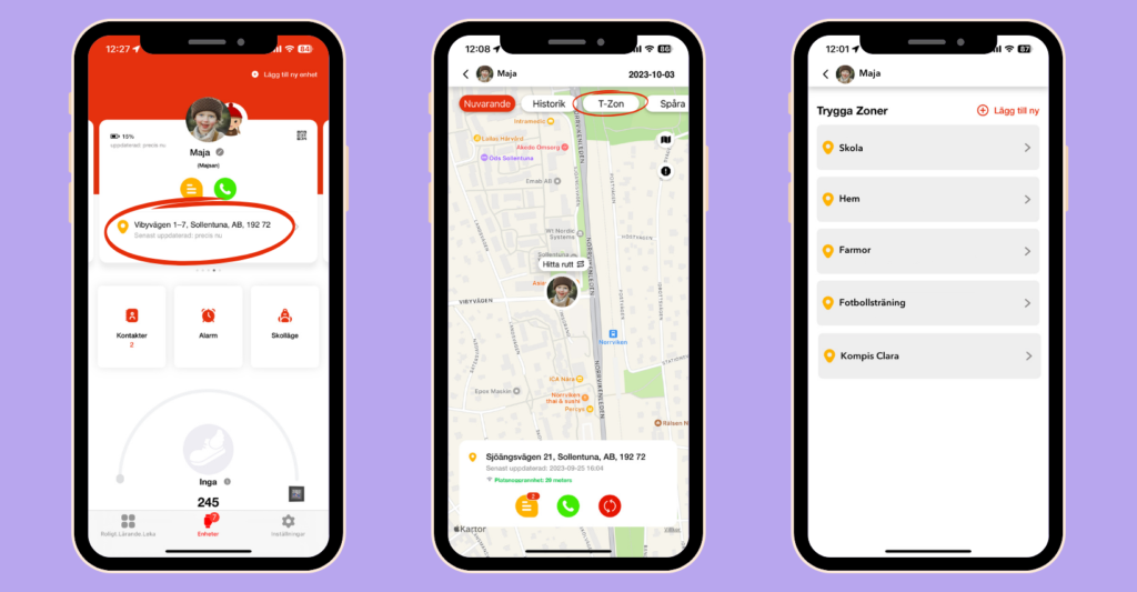 Alla Xploras smartklockor är utrustade med en GPS, där du som huvudkontakt kan ställa in flertal trygghetszoner. Det innebär att du får en avisering när barnet flyttar utanför det som ni som föräldrar har satt som geografisk gräns. Du kan skapa zoner från 300-5000 meter, och du kan även ha flera zoner. Du får ett notis på din mobiltelefon om barnet går ut ur zonen.